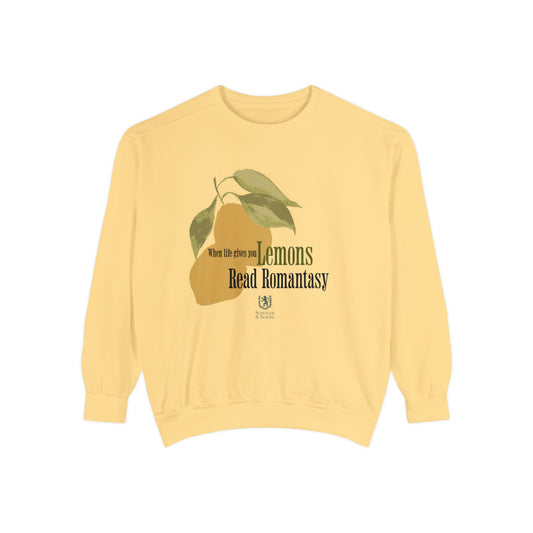 Scholar & Scribe "When Life Gives you Lemons, Read Romantasy" Watercolor Art Unisex Garment-Dyed Sweatshirt