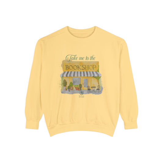 Scholar & Scribe "Take Me to the Bookstore" Watercolor Art Unisex Garment-Dyed Sweatshirt