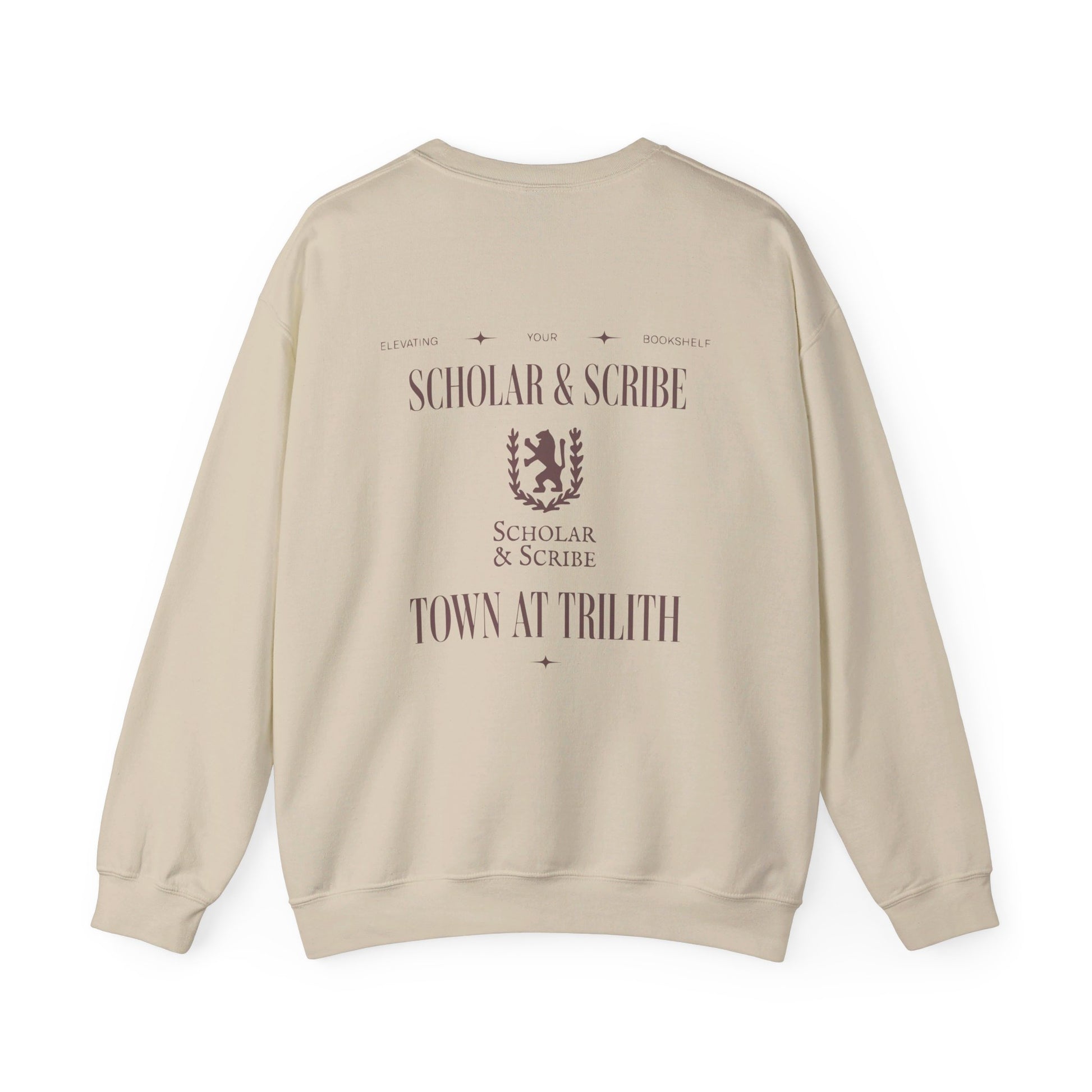 Featuring the message "Scholar & Scribe Town at Trilith: Elevating Your Bookshelf" across the front, this sweatshirt celebrates the intersection of literary passion and community spirit. Crafted from soft, high-quality fabric, it’s perfect for those who seek comfort without sacrificing style, whether you're browsing the shelves of your favorite bookstore or sharing recommendations at a book club meeting.